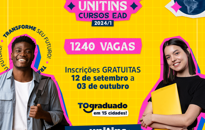 A Universidade Estadual do Tocantins publicou nesta quarta-feira, 06, o edital para o Vestibular 2024/1 dos cursos EaD que fazem parte do Projeto de Interiorização Universitária - TO Graduado. São 1.240 vagas para os cursos de Tecnologia em Análise e Desenvolvimento de Sistemas, Tecnologia em Gestão Pública e Tecnologia em Gestão do Agronegócio.