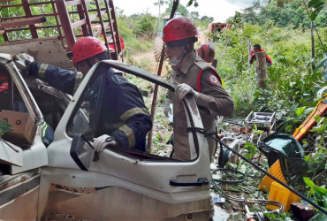 A cabine da camionete estava bem danificada e, em meio aos ferros distorcidos, estava a segunda vítima, Reginaldo Dias Medrado. O passageiro estava consciente e os bombeiros militares tiveram que usar um desencarcerador e algumas técnicas de socorro para desprende-lo e resgatá-lo.