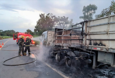 Coube aos bombeiros combaterem as chamas e resfriar o veículo, eliminando qualquer possibilidade de riscos secundários.