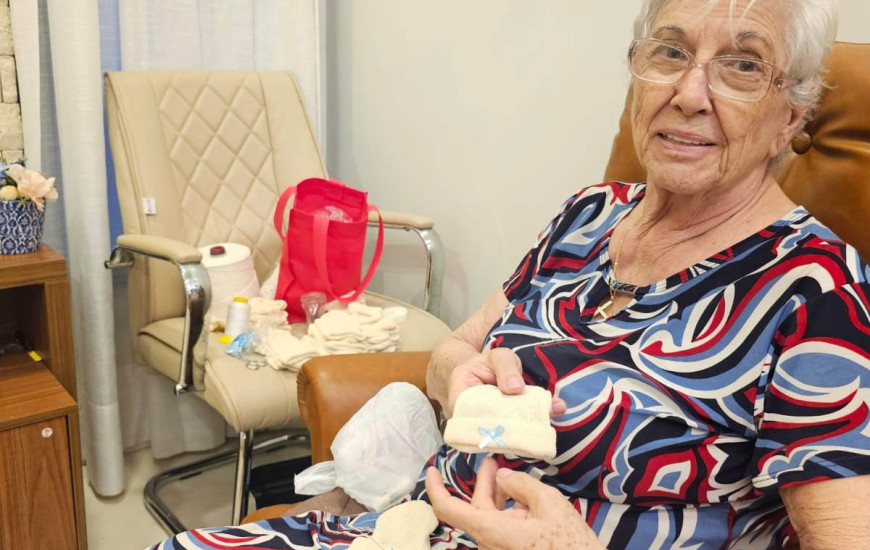Um item de extrema importância para o cuidado dos bebês, que ao nascerem perdem calor, principalmente pela cabeça. Assim são as toucas que ajudam a regular a temperatura. No Hospital e Maternidade Dona Regina Siqueira Campos (HMDR), o acessório é distribuído e conta com a ajuda de uma voluntária especial, a idosa Karine Rady Nardini, bisavó de quatro, de 80 anos, que decidiu fazer toucas.