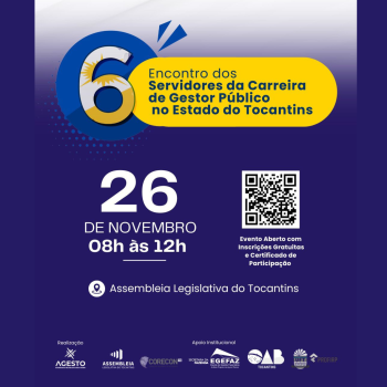 A Associação dos Gestores Públicos do Estado do Tocantins (Agesto) informou que a 6ª Edição do Encontro dos Servidores da Carreira de Gestor Público será realizada nesta quarta-feira, 26, às 8h, na Assembleia Legislativa. O evento ser&aacu...