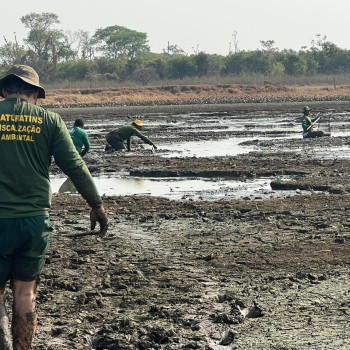Operação na Ilha do Bananal resgata 150 peixes ameaçados pelo baixo nível das águas