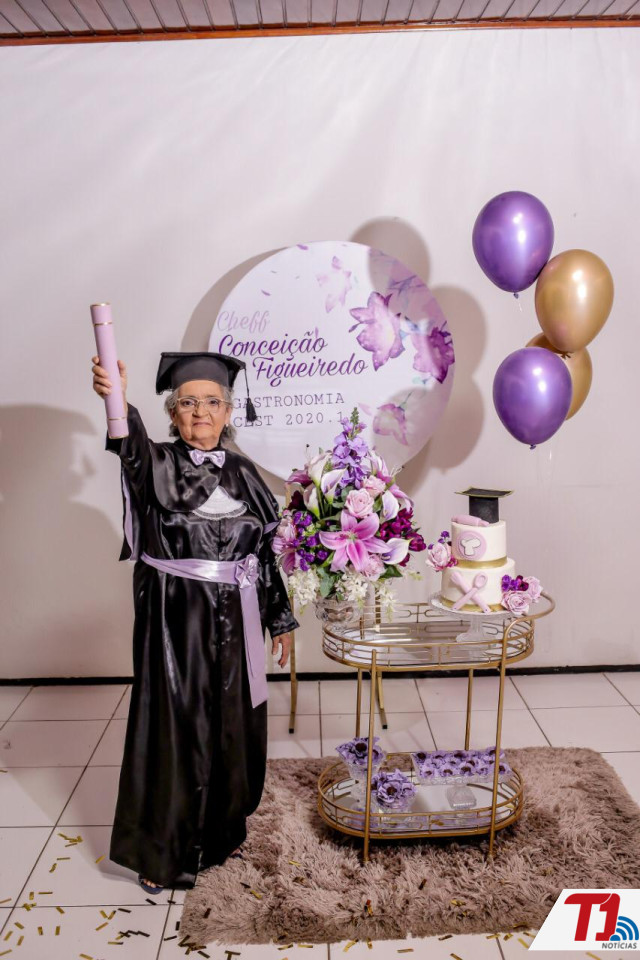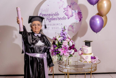 Foi na Gastronomia que a idosa encontrou a verdadeira paixão. Com o incentivo da família, amigos e colegas de turma, superou seus limites, ressignificou a relação com as panelas e conseguiu conquistar um diploma universitário.