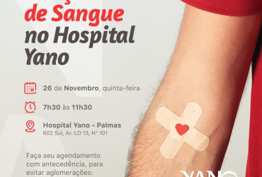 O dia nacional do doador de sangue é celebrado no dia 25 de novembro e com o intuito de conscientizar a população da importância da doação de sangue, bem como de contribuir com o estoque de sangue de Palmas, a equipe do Hospital de Olhos Yano irá realizar uma ação em parceria com o Hemocentro.