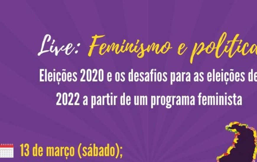 Acontece neste sábado, 13, a partir das 18 horas, no canal do YouTube Resistência Contemporânea, a live "Feminismo e política: Eleições de 2020 e os desafios para as eleições de 2022 a partir de um programa feminista".