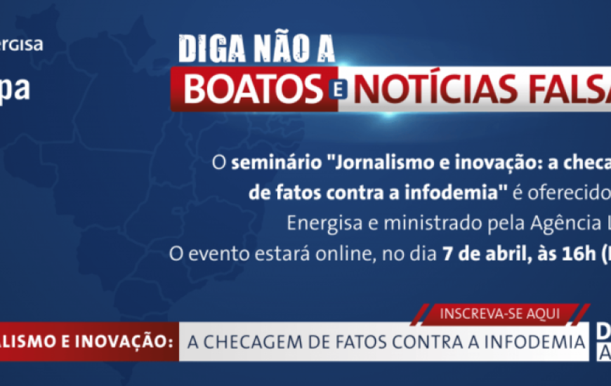 A Energisa promove nesta quarta-feira, 7, o seminário “Jornalismo e inovação: a checagem de fatos contra a infodemia” em parceria com a Agência Lupa - primeira agência de checagem do país. O evento tem vagas limitadas e está direcionado a profissionais envolvidos diretamente na checagem de informações e produção de conteúdo.