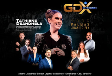 O GDX Experience contará com palestras de Tathiane Deândhela, especialista em produtividade e alta performance, que é considerada a maior mentora de palestrantes do Brasil e autora de best-sellers sobre gestão do tempo e comunicação eficaz. Também estarão presentes Raffa Nunes, estrategista em vendas de produtos e especialista em Inteligência Artificial, Silvia Souto, empresária e criadora do método APPM, que visa melhorar a performance das empresas, Ícaro Samuel, empresário e médico de referência internacional em Lipo LAD, e Simone Bucar, fundadora do Shine América, com sua experiência na área de liderança e negócios, Éverson Lagares, empresário nos setores de loteamento, leilões de imóveis, treinamentos e estruturas para eventos, e Lucas Moraes, empresário especialista em gestão e liderança, que compartilharão suas experiências e abordagens para o sucesso no mercado atual.