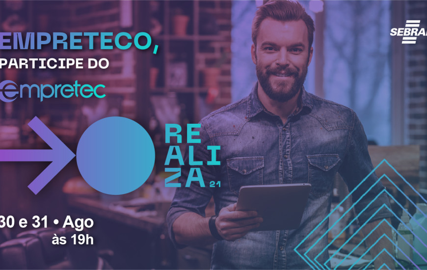 Para resgatar os aprendizados e compartilhar histórias reais dos empresários que se reinventaram durante a pandemia, o Sebrae vai reunir, virtualmente, nos dias 30 e 31 de agosto, a partir das 19h, empreendedores de todo o país no Empretec Realiza. As inscrições são gratuitas e exclusivas para quem já participou do Seminário Empretec e podem ser feitas no site do evento.