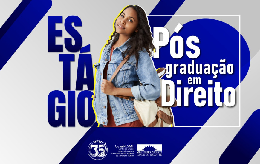 O Ministério Público do Tocantins (MPTO), por meio da Universidade Patativa do Assaré, abriu inscrições para processo seletivo de estágio remunerado em Direito. São oferecidas quatro vagas, mais cadastro de reserva, para estudantes de pós-graduação na área, com bolsa-auxílio de R$1.500,00 mensais, além de auxílio-transporte e seguro de acidentes pessoais.