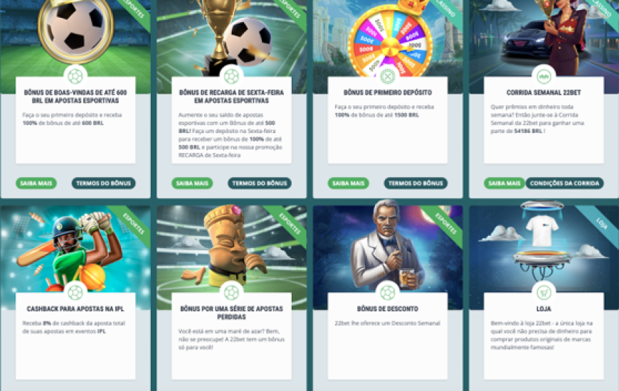 Descobrir qual é o melhor 22bet bônus não é uma tarefa fácil, já que a plataforma oferece uma ampla variedade para seus usuários. Além dos tradicionais, você também encontra bônus de aniversário, loja e até oportunidade de vender seu cupom de apostas.