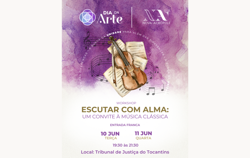 Em Palmas, a programação conta com atividades gratuitas e abertas ao público, com destaque para o workshop “Escuta com Alma: um convite à música clássica”, que acontece nos dias 10 e 11 de junho (terça e quarta-feira), às 19h30, no auditório do Tribunal de Justiça do Tocantins. O evento propõe uma imersão na música clássica como caminho de reflexão sobre ética, consciência e humanidade, de forma acessível e sensível.