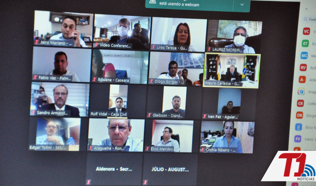 Via teleconferência, o governador Mauro Carlesse (DEM) comandou - pela primeira vez - uma reunião com mais de 20 prefeitos, o secretário de Saúde, Edgar Tollini, e o secretário chefe da Casa Civil, Rolf Vidal, para discutir a fase dois do Coronavírus no Tocantins.
