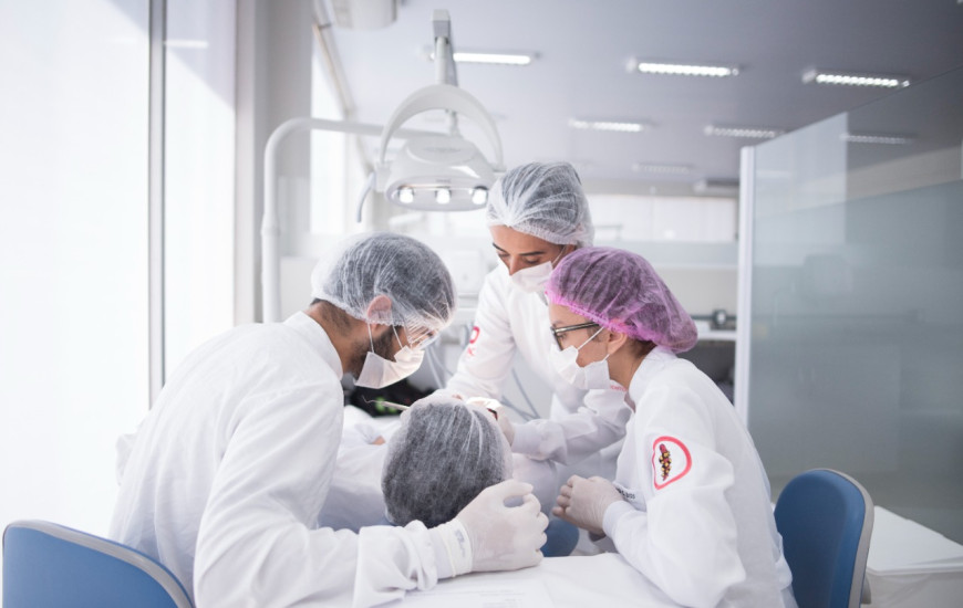 Acadêmicos desenvolvendo atividades práticas na Clínica Escola de Odontologia do ITPAC Palmas antes da pandemia da Covid-19.