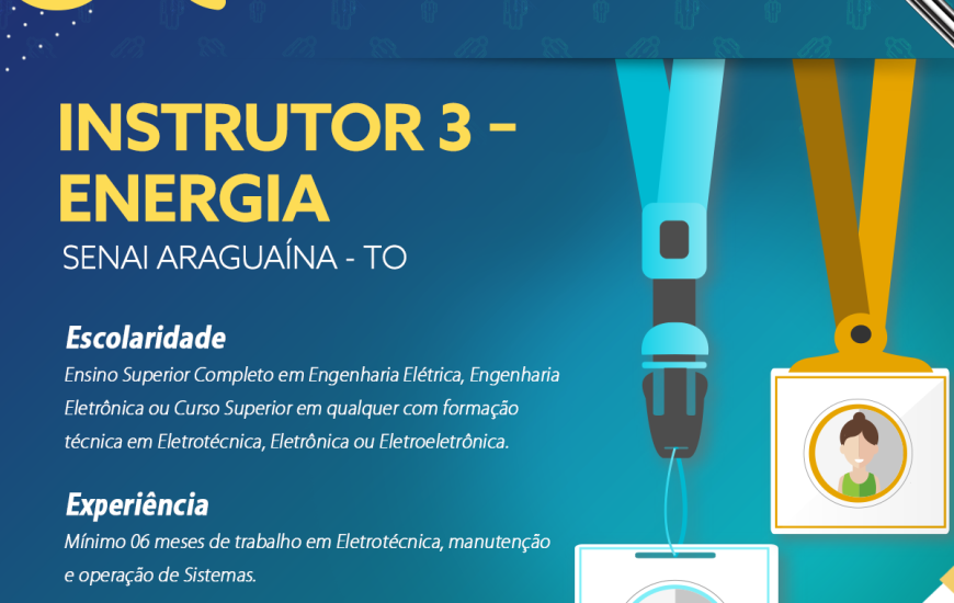 Os interessados em participar devem acessar o site do Serviço Nacional de Aprendizagem Industrial – SENAI Tocantins, no link Trabalhe Conosco e candidatar-se a vaga de Instrutor 3 – Energia, em Araguaína. As inscrições vão até o dia 4 abril.