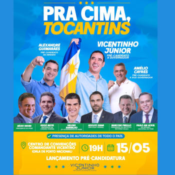 O PSDB (Partido da Social Democracia Brasileira) e o MDB (Movimento Democrático Brasileiro) farão no dia 15 de maio, em Porto Nacional, o lançamento oficial das pré-candidaturas de Vicentinho Júnior ao Governo do Estado; de Amélio Cayres a vice-governador e...