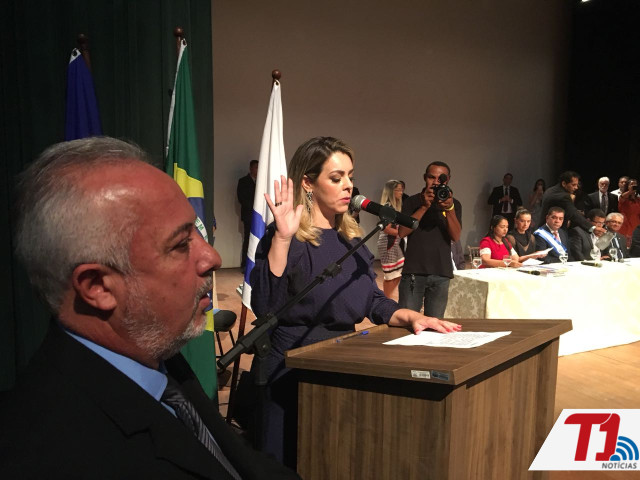 O evento seguiu com o presidente da Câmara de Vereadores, Folha Filho, empossando Cinthia Ribeiro como prefeita para concluir o mandato por mais dois anos à frente da Prefeitura de Palmas. A prefeita de Palmas fez o juramente e assinou o termo de posse, recebendo ainda a faixa de prefeita das mãos de Amastha.