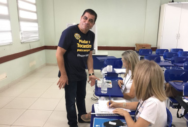 O candidato ao governo do Tocantins, Carlos Amastha (PSB) chegou cedo a sua zona eleitoral no Colégio Marista, na Capital, neste domingo, 3, para votar e afirmou que está “pronto para vencer no primeiro turno, não no segundo. O Tocantins tem pressa!”, disse. O candidato chegou acompanhado pela prefeita de Palmas, Cinthia Ribeiro (PSDB), uma de suas maiores apoiadoras, e pela esposa Glô Amastha, além de membros de sua campanha.