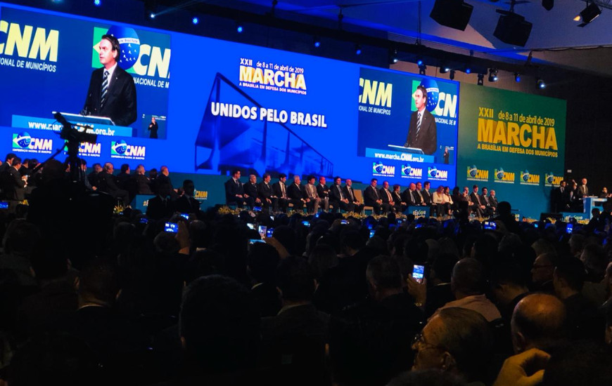 O presidente da República, Jair Bolsonaro, adotou um discurso direto, sendo breve em suas palavras. Destacou a importância da educação para o país, que segundo ele, “pode retirar o Brasil da situação crítica que está passando”. Emendou ainda um discurso pela valorização dos professores, da Escola Sem Partido, no intuito de criarmos “filhos melhores”, disse. No fim pregou aos prefeitos: “vamos juntos resgatar o futuro do Brasil”, ao anunciar posteriormente o aumento de 1% do FPM. Bolsonaro esteve acompanhado de boa parte da equipe ministerial.