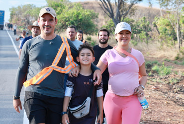 Com os pés firmes na estrada e o coração entregue a Deus, o deputado federal Vicentinho Júnior (PP), participou nesta quinta-feira, 14, da tradicional caminhada da Romaria do Senhor do Bonfim, em Natividade. Ao lado de Polyanna Siqueira e de milhares de romeiros, o parlamentar percorreu os 23 quilômetros até o Santuário, em um ato de fé e devoção que mantém há 25 anos.