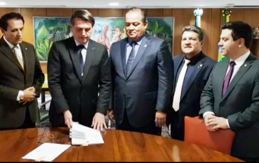 Acompanhado do senador Eduardo Gomes (MDB), e dos deputados Tiago Dimas (SD), Gaguim (DEM) e Osires Damaso (PSC), o presidente Jair Bolsonaro (PSL) sancionou na noite desta segunda-feira, 08, a lei que cria a Universidade Federal do Norte do Tocantins (UFNT), que terá sua sede em Araguaína.