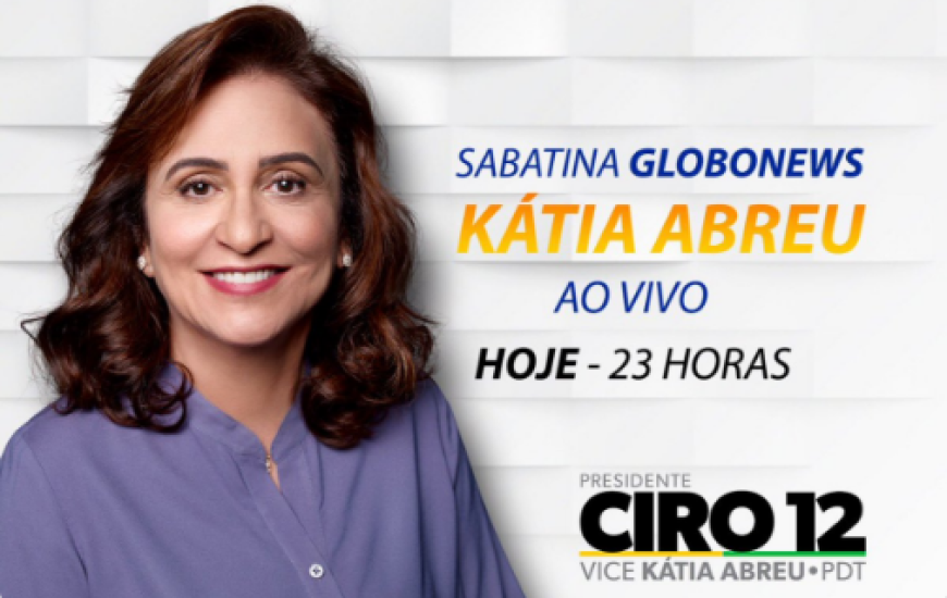 Após declinar participação em sabatina para a revista Veja, a senadora e candidata a vice de Ciro Gomes (PTB), senadora Kátia Abreu (PTB), divulgou em sua conta no Twitter que participa de entrevista nesta segunda-feira, 3, no programa Central das Eleições, do canal pago Globo News.