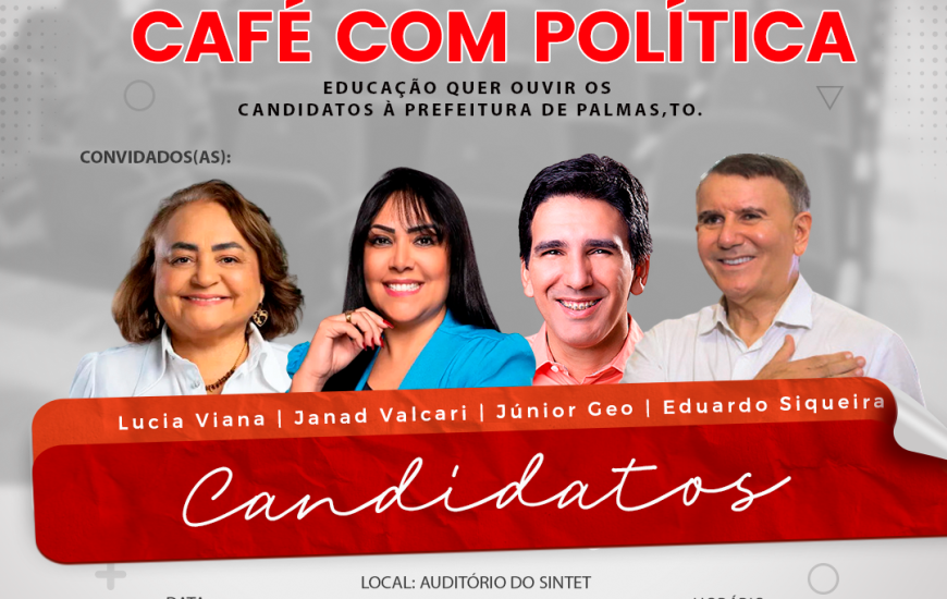 O Sindicato dos Trabalhadores em Educação do Estado do Tocantins (Sintet), através da Regional de Palmas, convidou os candidatos à prefeitura de Palmas para apresentarem suas propostas à categoria em um evento que acontece neste sábado, 21 de setembro, no auditório Zumbi dos Palmares, sede do Sintet em Palmas.