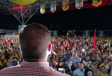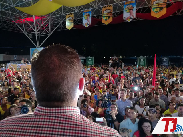 Com a praça do Espaço Cultural lotada, a Convenção do PSB e partidos aliados, o ex-prefeito de Palmas Carlos Amastha, discursava após chegar acompanhado da prefeita Cinthia Ribeiro, da sua esposa Glô Amastha e aliados por volta das 19h10 da noite deste domingo, 22.