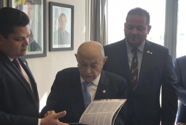 Acompanhado por familiares e amigos, o ex-governador do Estado, Siqueira Campos (DEM), já está no Senado Federal para tomar posse. Ele foi recebido no gabinete que ocupará em Brasília pelo presidente da Casa, Davi Alcolumbre (DEM).