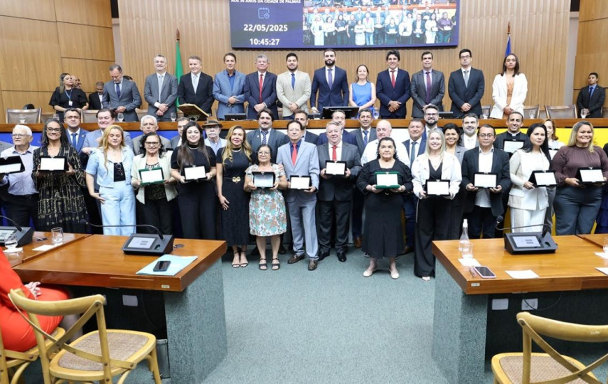 A solenidade aconteceu no plenário da Casa de Leis e reuniu autoridades, homenageados e representantes da sociedade civil. A sessão solene foi proposta pelo deputado Professor Júnior Geo (PSDB), que ressaltou em discurso a força dos primeiros moradores e a importância da cidade para o Tocantins. “Palmas nasceu do sonho de um homem, Siqueira Campos, e da coragem de muitos. Foi edificada em um cenário de dificuldades, onde não havia infraestrutura, mas havia fé, vontade e visão de futuro. É uma cidade que se impõe não apenas por sua beleza, mas principalmente por sua história e simbolismo para todos nós tocantinenses”, destacou o parlamentar.