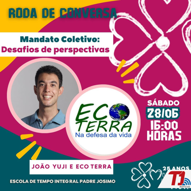 O ex-vereador de Alto Paraíso (GO), João Yuji, participará neste sábado, 28, de uma roda de conversa promovida pelo Ecoterra. O momento integra a programação da 25ª edição do Movimento Pela Vida e ocorre a partir das 19h, na sala 24 da Escola Padre Josimo, na quadra 301 Norte. O tema do encontro é “Mandato Coletivo: Desafios e Perspectivas”.