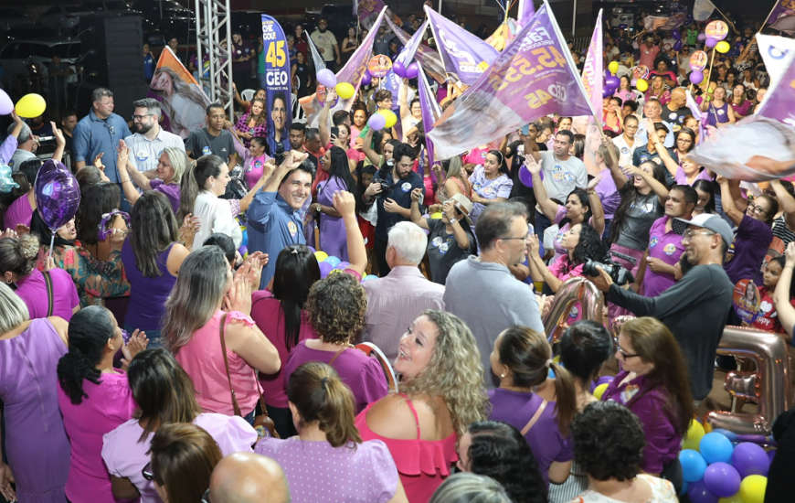 Em seu discurso, Júnior Geo agradeceu o apoio recebido, especialmente da Professora Fátima Sena, e sublinhou a importância de eleger um gestor preparado para conduzir a cidade. "Não há luta só na terra. Não há luta só contra o dinheiro. Nós temos uma luta espiritual muito forte. Estamos diante de uma situação que pode transformar a cidade de Palmas. Ou retornamos ao passado ou jogamos nossa cidade no fundo do poço. Mas podemos escolher a oportunidade de eleger alguém que sabe que Palmas está preparada para o futuro, fruto do trabalho da gestão Cinthia Ribeiro, e esse futuro está aqui. Sou eu, Júnior Geo, o próximo prefeito de Palmas. Se um professor muda a vida de um aluno em uma sala de aula, imagine o que ele não pode fazer com o futuro da nossa cidade", declarou.