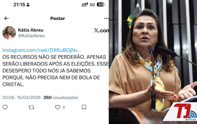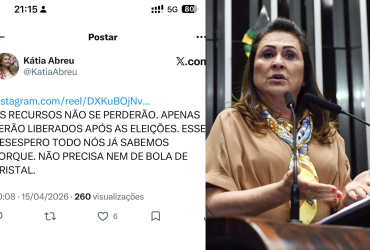 A ex-senadora Kátia Abreu utilizou seu perfil no X (antigo Twitter) na noite desta quarta-feira, 15, para comentar o impasse entre o Governo do Tocantins e a Assembleia Legislativa sobre a liberação de R$ 56 milhões do BNDES. Em tom crítico, Kátia minimizou o risco de perda dos recursos e sugeriu que a pressa do Executivo possui motivações políticas.