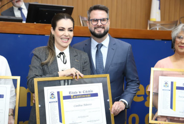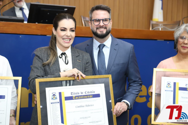 Durante a solenidade, a Prefeita de Palmas Cinthia Ribeiro (PSDB) também foi agraciada com o título de cidadania.“Deus me possibilitou viver aqui os melhores anos da minha vida. Nós somos fruto daquilo que somos moldados para ser e da nossa história. História que a gente não apaga! Sou grata a todas as pessoas que me ajudaram a chegar até aqui. Entre elas, do saudoso senador João Ribeiro. Ele que me apresentou o Tocantins, que me fez apaixonar por esta cidade e por este povo. Grandioso também é o meu marido, que sempre respeitou o meu passado, reconstruindo nossos sonhos e a nossa família. Nós escrevemos juntos uma trajetória brilhante! Tenho gratidão a ele, assim como a todos tocantinenses que estão escrevendo a história do nosso Estado com ousadia e coragem”.