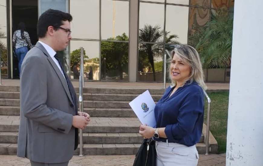 A procuradora da Câmara dos Deputados, Patrícia Daher Rodrigues Santiago, esteve nesta quarta-feira, 13, no Fórum de Palmas, para acompanhar a audiência de conciliação no processo movido pelo governador Mauro Carlesse (DEM), contra o deputado federal Vicentinho Júnior (PL-TO).