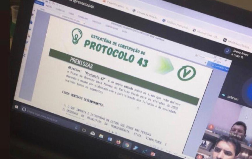 O partido verde metropolitano realizou nesta terca-feira,12, reunião virtual com seus membros, onde apresentou a segunda etapa das ações do Protocolo 43, que é um amplo estudo sobre os eixos que irão definir o plano de governo para Palmas para as eleições deste ano.