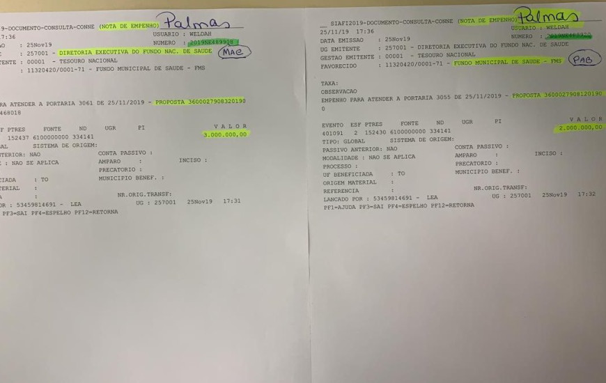 São dois valores. O primeiro de R$ 3 milhões para atendimentos de média e alta complexidade e outro de R$ 2 milhões para a atenção básica. O montante tem como remetente a Diretoria Executiva do Fundo Nacional de Saúde (FNS).