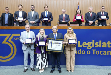 Presidida pelo deputado Jair Farias (UB), a sessão homenageou o presidente da Codevasf, Marcelo Andrade Moreira Pinto, o superintendente Regional da Codevasf/TO, César Félix Fragoso, o superintendente da Codevasf/TO, no período de 2021 a 2023, Homero Silva Barreto, os senadores Irajá Silvestre (PDS) e Dorinha Seabra (UB), a chefe de Gabinete da Superintendência Regional da Companhia, Bárbara Maria Aquino de Moura Barreto e o diretor de Recursos Hídricos do Tocantins, Aldo Araújo de Azevedo.