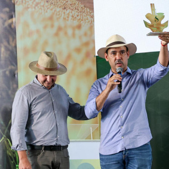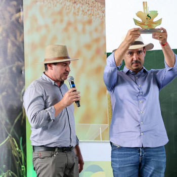 O pré-candidato ao governo do Tocantins Vicentinho Júnior foi homenageado pela Aprosoja Brasil durante a cerimônia de Abertura Nacional da Colheita de Soja, na manhã dessa sexta-feira, dia 30, na Fazenda Alto da Serra, do Grupo Wink, em Porto Nacional (TO).