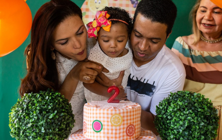 O tema da festa foi o pomar da Luiza.
