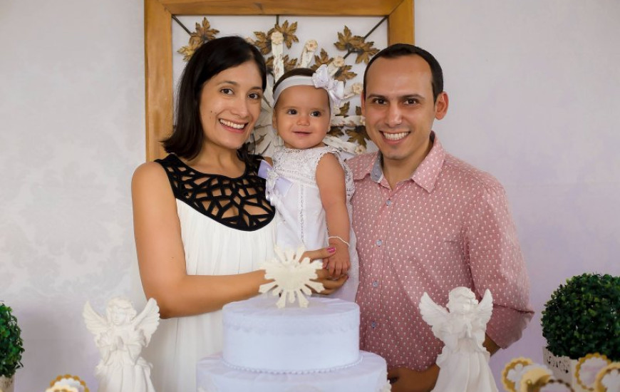 A pequena Alice foi batizada. A bela é filha dos advogados Bruna Bonilha Azevedo e Fabrício Azevedo.
