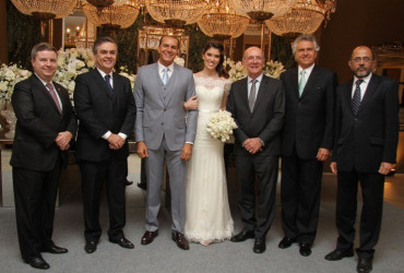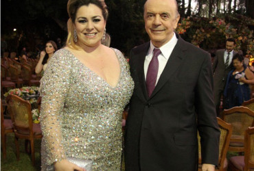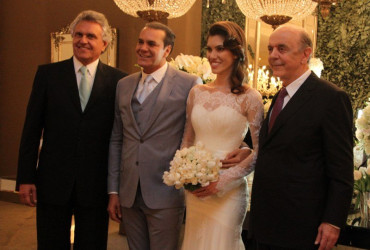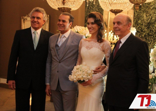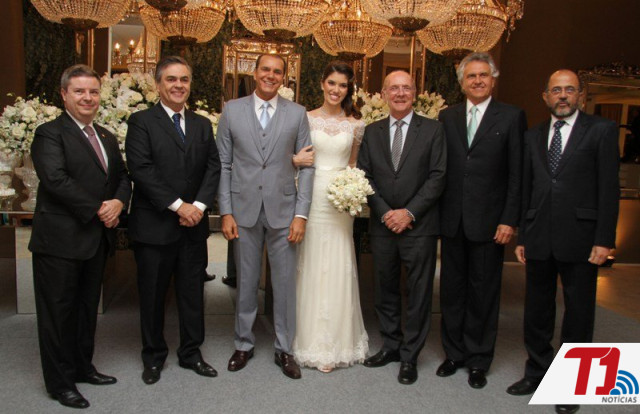 O senador Ataídes de Oliveira e a miss Tocantins 2012, Viviane Fragoso, felizes da vida quando celebravam a união no Recanto das Águas, em Brasília (DF), na tarde do dia 16 de julho.