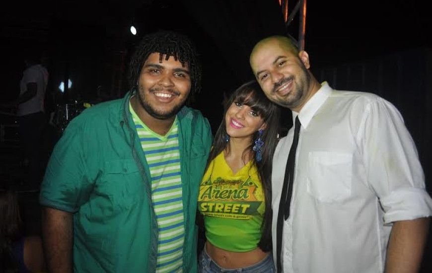 O embaixador da alegria e humorista Paulo Vieira e o comediante Bruno Barros Barbosa em click com a Panicat Carol Castro em evento recente na Capital.