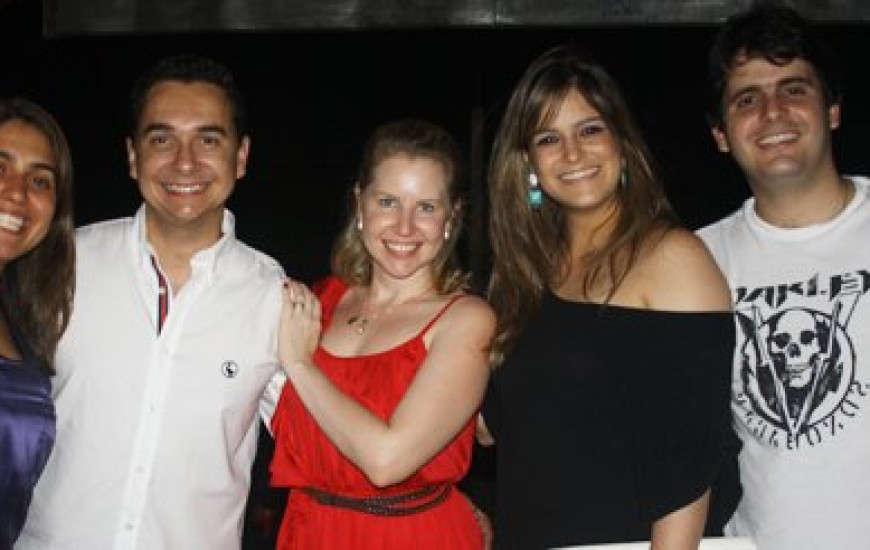 Em comemoração ao seu aniversário, Ronaldo Coelho e sua namorada Aline Rassi (C) receberam os amigos Melissa Cattini (E), Fernanda Vassallo e Thiago de Paula no Mumbuca.