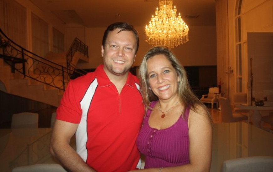 O dentista Marcos Landgraf e sua esposa, Daniele Landgraf, prestigiaram a noite de recepção da amiga Giselle Souza