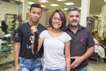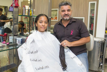 Ação em apoio às pacientes em tratamento ao câncer de mama, para doação de parte de cabelos para a confecção de perucas do projeto Camarim da Beleza, do Centro Oncológico de Palmas; instituição local que realiza um trabalho muito íntegro em prol da autoestima feminina emprestando gratuitamente perucas e lenços a pacientes durante a quimioterapia