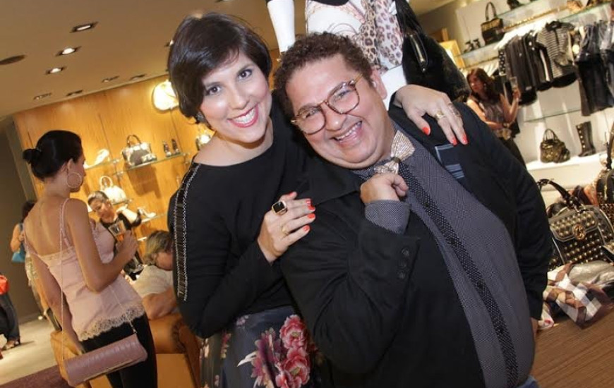 A Design de moda Patrícia Fregonesi e o colunista social Jotta Nunes durante a inauguração da nova loja Carmen Steffens em Araguaína.