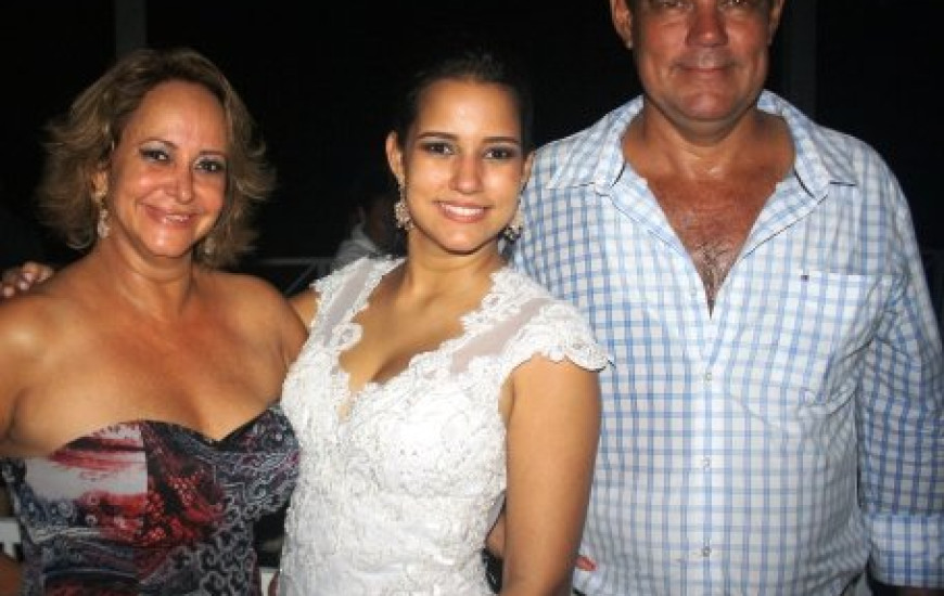 Ao lado dos pais, Francisco e Divina Pires, Érika Pires recepcionou convidados para noite de comemoração de sua formatura em Medicina, na noite de ontem, em Araguaína