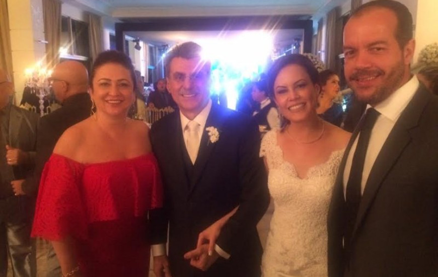 A senadora e ministra da Agricultura, Kátia Abreu e seu marido, Moisés Pinto Gomes prestigiaram na noite deste sábado, 3, a cerimônia de casamento do senador Romero Jucá (PMDB) e sua noiva Rosilene, realizada em Brasília, no Recanto das Águas, mesmo espaço de eventos onde ocorreu a festa de casamento de Kátia. Além da ministra, o casamento de Jucá reuniu diversas autoridades peemedebistas, entre eles o presidente da Câmara, deputado Eduardo Cunha; o presidente do Senado, Renan Calheiros; o ex-presidente José Sarney, que foi um dos padrinhos; o líder do partido no Senado, Eunicio Oliveira; o senador Edison Lobão; a senadora Marta Suplicy (PMDB-SP), recém-fliada à legenda. Também compareceram à cerimônia o ministro dos Transportes, Antônio Carlos Rodrigues; o líder do governo no Senado, Delcídio do Amaral; e os senadores Blairo Maggi, Aloysio Nunes Ferreira, José Agripino Maia e Ana Amélia, entre outros políticos.