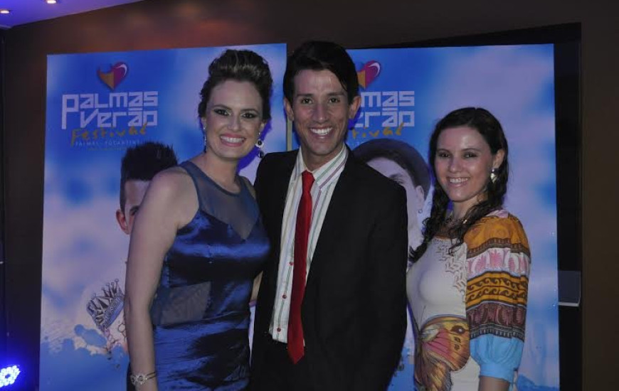 Os jornalistas Amanda Gromboni, Álvaro Júnior e Nicéia Menegon durante o lançamento do Palmas Verão Festival.