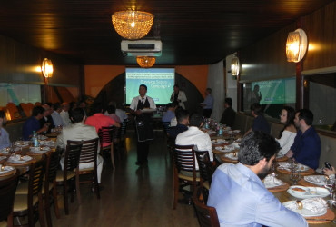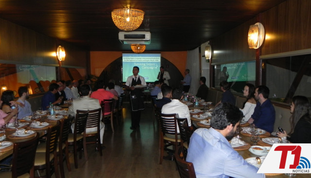 Mais de 35 médicos que atuam em clínicas e hospitais de Palmas estiveram reunidos na noite desta quinta-feira, 14, em um dos restaurantes mais frequentados da Capital, para um jantar promovido pela Intensicare, gestora de UTI’s em todo o país, e pela Associação de Medicina Intensiva do Tocantins. Os médicos foram recebidos pelo presidente da AMIB-TO, cirurgião cardiovascular Wallace André Pedro da Silva; pelo neurocirurgião Márcio Antônio Figueiredo; pelo gerente de UTI da Intensicare, Alexandre Bacci; e por um dos diretores da Intensicare, Bruno Aquino. Na ocasião, os médicos puderam participar de uma palestra, ministrada em conjunto por Alexandre Bacci e Wallace André, e tiraram várias dúvidas sobre procedimentos inerentes à medicina intensiva e trocaram experiências sobre suas áreas de atuação profissional. Logo após, um jantar repleto de pratos típicos da culinária tocantinense foi servido aos convidados. Ao final, os médicos receberam certificados de participação no evento.
